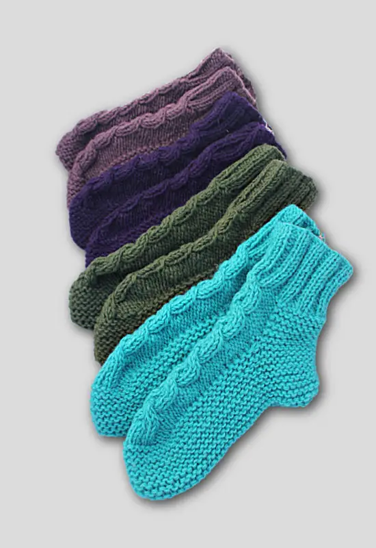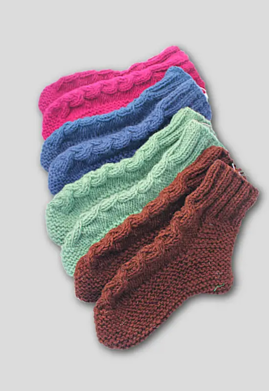 These great solid color cable knit slippers are warm AND practical. They are fully lined, unisex, and super cozy! A blend of wool is used to hand knit these cozy, Fair Trade slippers. Each pair is fully lined with fleece with no sole.