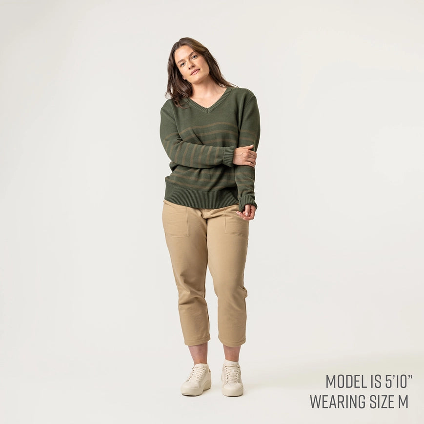 Organic Cotton V-Neck Sweater - Pine Stripe
