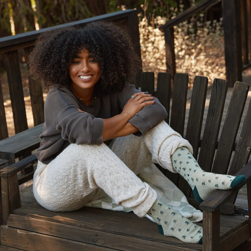 These are frosted tips that never go out of style. Cozy, stylish, and perfect for the holiday season, these green snowy tree socks make every step feel like a winter wonderland.