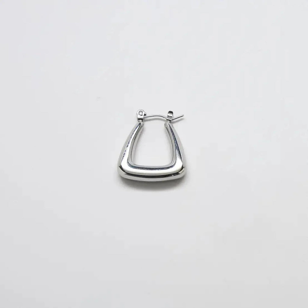 Be bold in this pair of triangle hoop earrings. These beautiful earrings are hollow for a lightweight but "heavy-looking" feel. They're perfect for an everyday look and can be stacked with our other tiny studs. Elevate your everyday look with these bold and beautiful Silver Triangle Hoop Earrings.