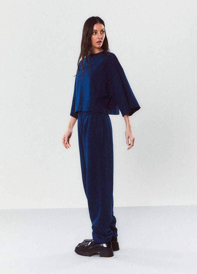 This 100% cotton fleece boxy top features 3/4 semi-bell sleeves and a raw edge design, offering versatility with the option to fold or leave straight for a relaxed, effortlessly chic look. Crafted for both comfort and style, it’s the ultimate fusion of contemporary design and laid-back luxury.