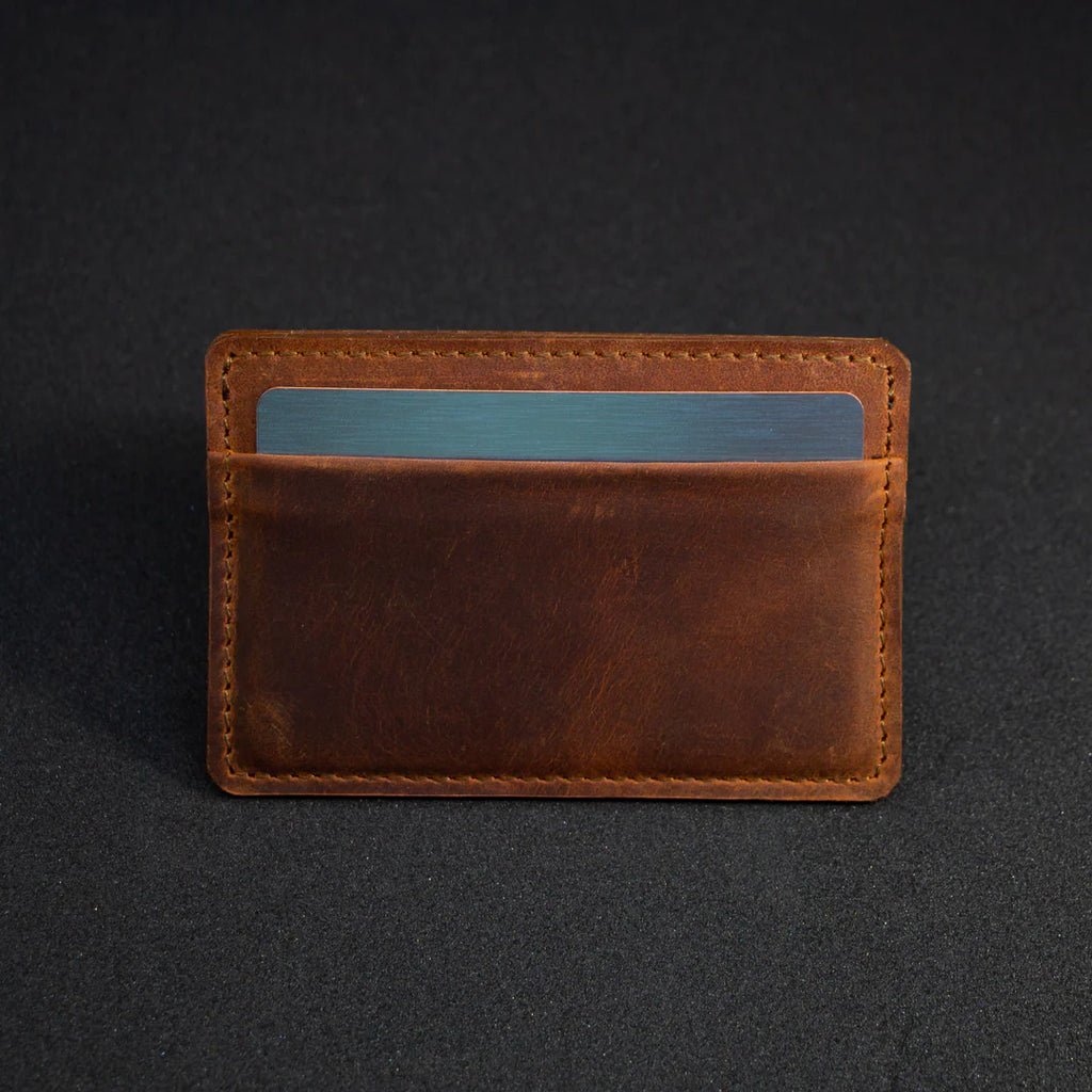 Take a load off. Feel the lightness. It is just what you need. This Origin Creations Minimalist Card Wallet is made to last. Meticulously hand-cut & stitched from rich, natural, full-grain Nicaraguan cowhide. Comes in natural tones & striations that make each wallet unique. Saddle Brown is inspired by the beautiful saddle horn patina that you will see across Nicaragua.