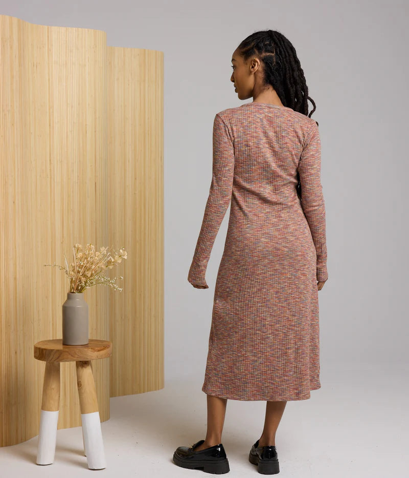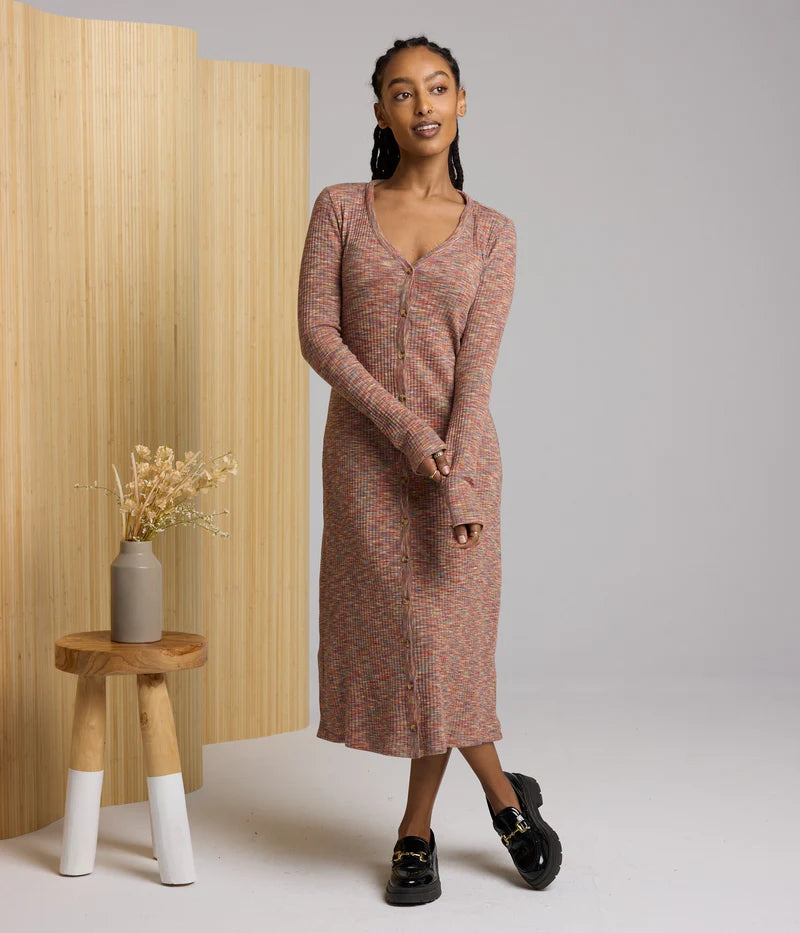 The magic in this dress is in the ribbed fabric that maximizes stretch and comfort, and the functional front buttons. Feel free to layer this dress as desired for whatever the cooler months have to throw your way.