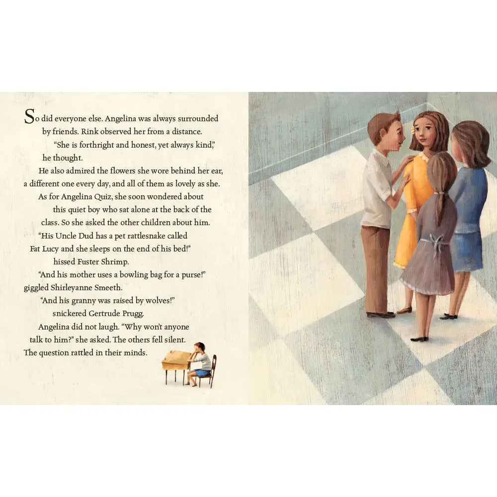 Quiet Rink always sits at the back of the classroom, away from the other children who have heard strange rumors about his family and prefer to keep their distance. But when a kind new girl joins his class, Rink's life begins to change. Inspired by the experiences of her brother, who is on the autism spectrum, Jen Wojtowicz's heartwarming tale encourages children to empathize with and reach out to others.