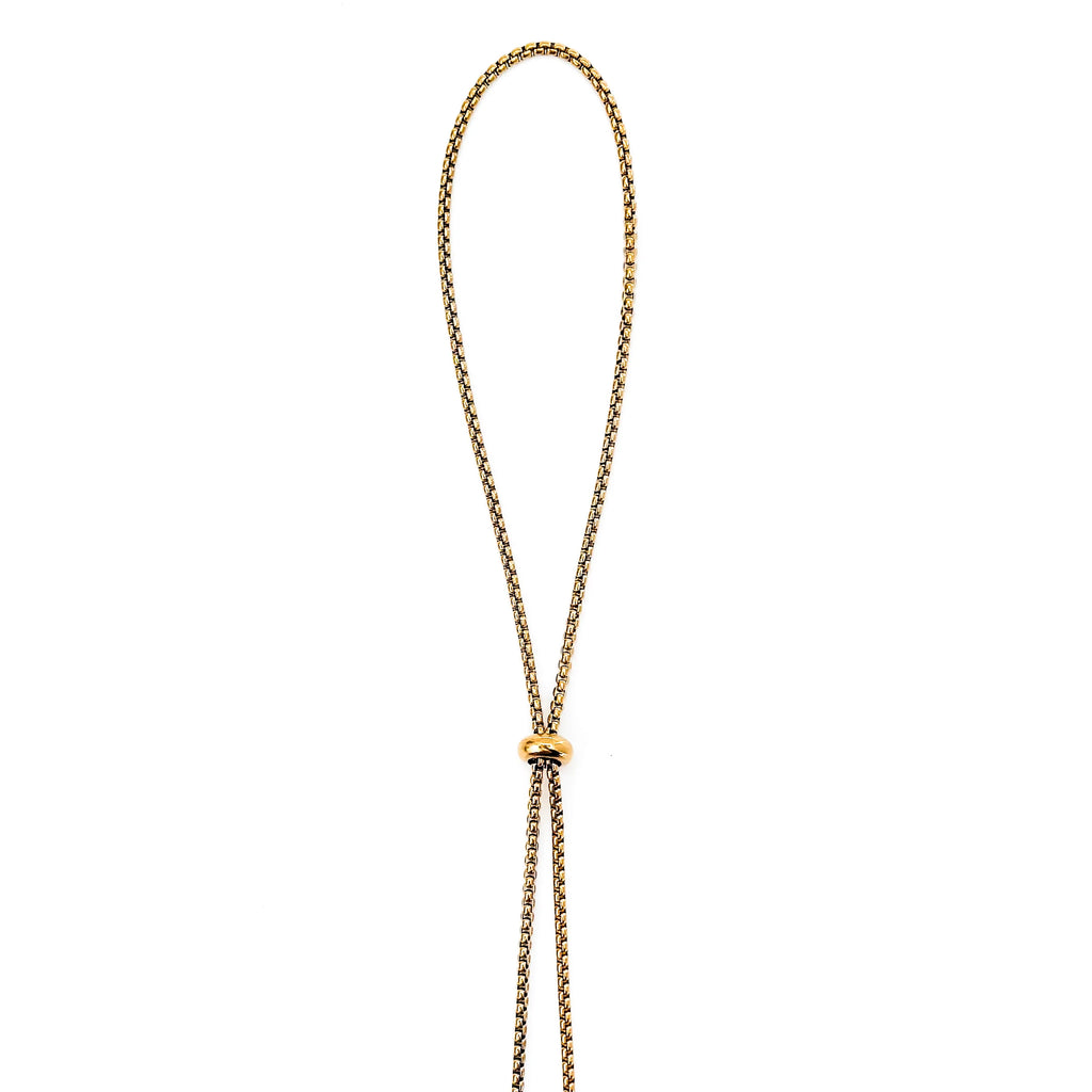 Accessorize in style with the Halsey Sliding Bead Lariat Necklace. This eye-catching necklace features a gold sliding bead and an adjustable length for a perfect fit. Plus, it's waterproof for worry-free wear. Upgrade your look with this versatile and durable necklace!