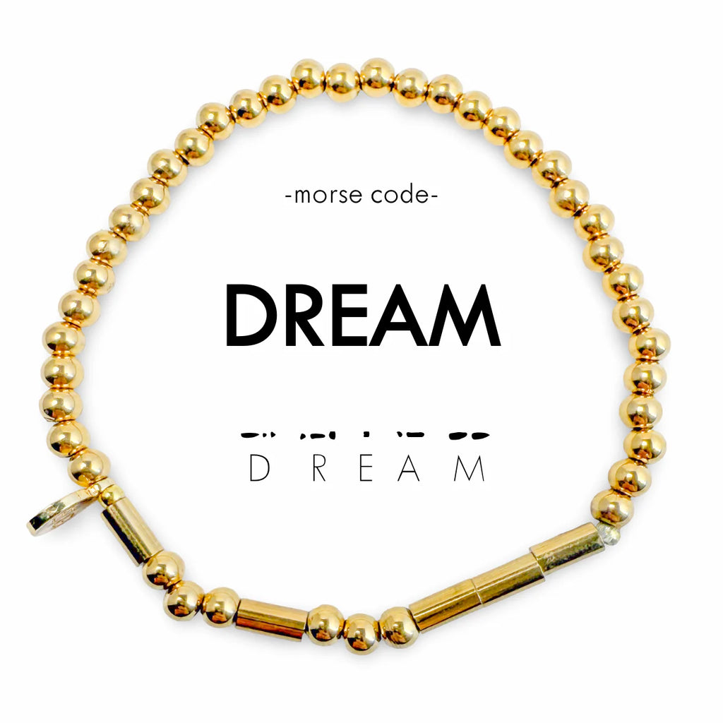 This Morse Code bracelet spells DREAM using 4mm 18k gold-plated beads—a beautiful daily reminder that every big idea, movement, and moment of change begins with a dream. Whether you're launching something new, imagining what’s next, or just holding onto hope, this bracelet is a wearable spark of vision and possibility. Crafted to be waterproof, sweatproof, and tarnish-resistant—because your dreams deserve to shine.
