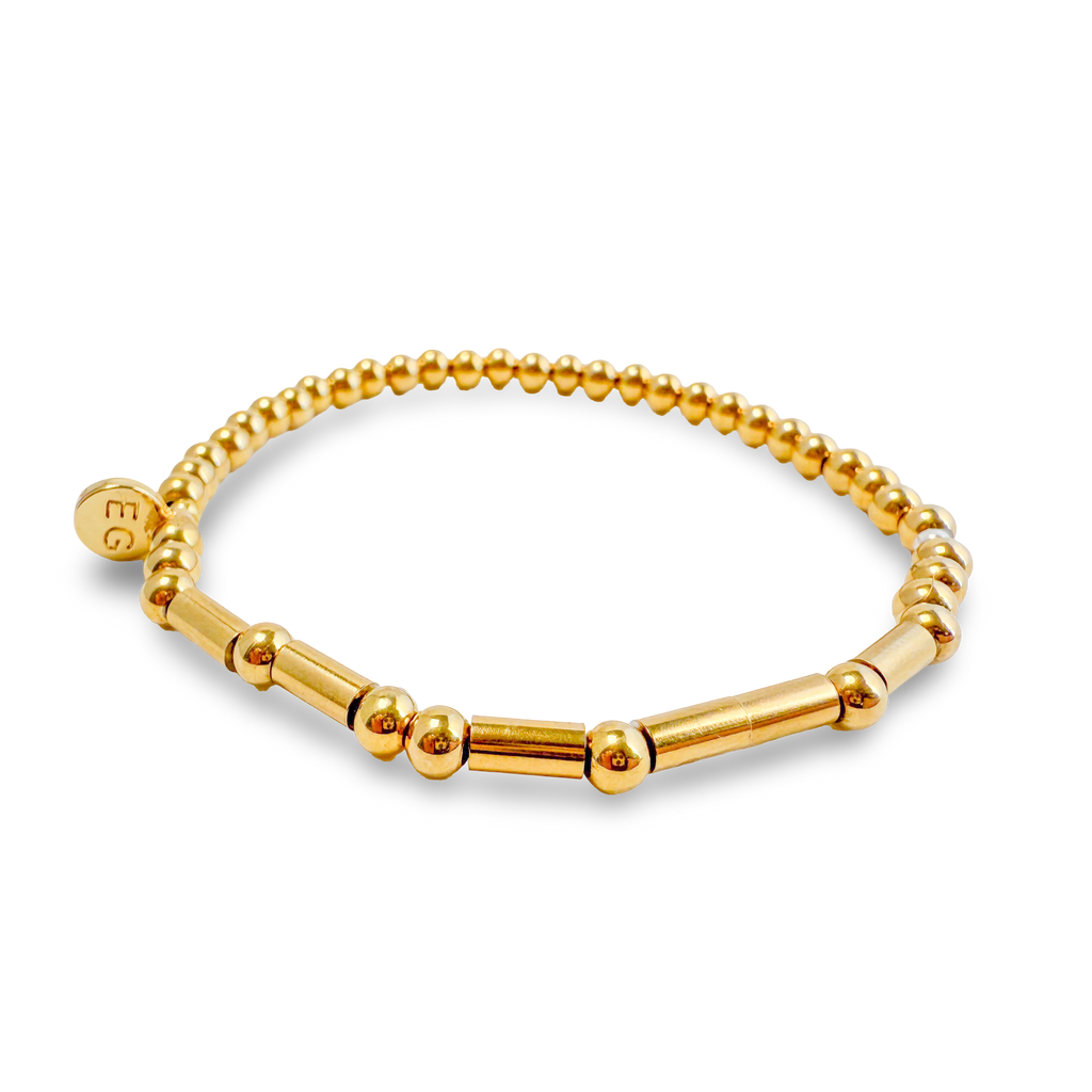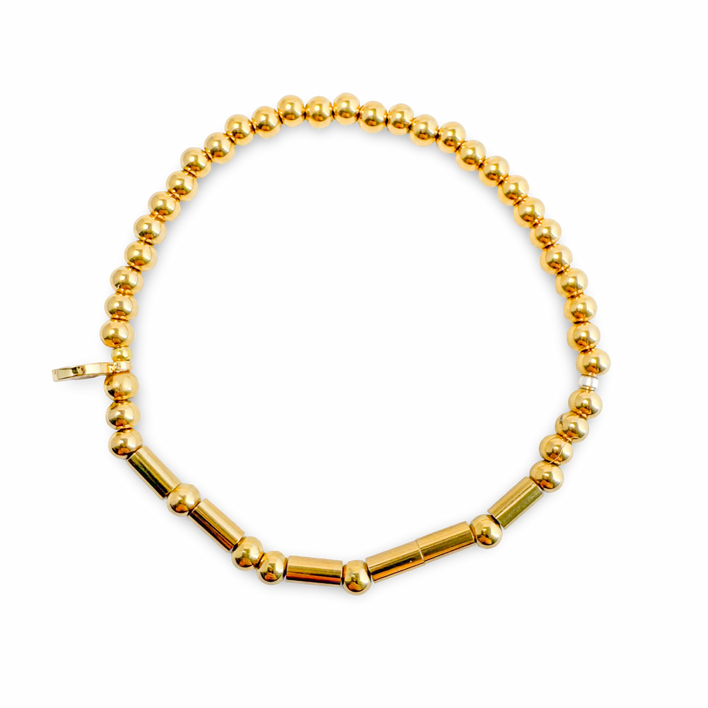 - Beads: 4mm 18k gold-plated PVD round & tube beads (plated over stainless steel)