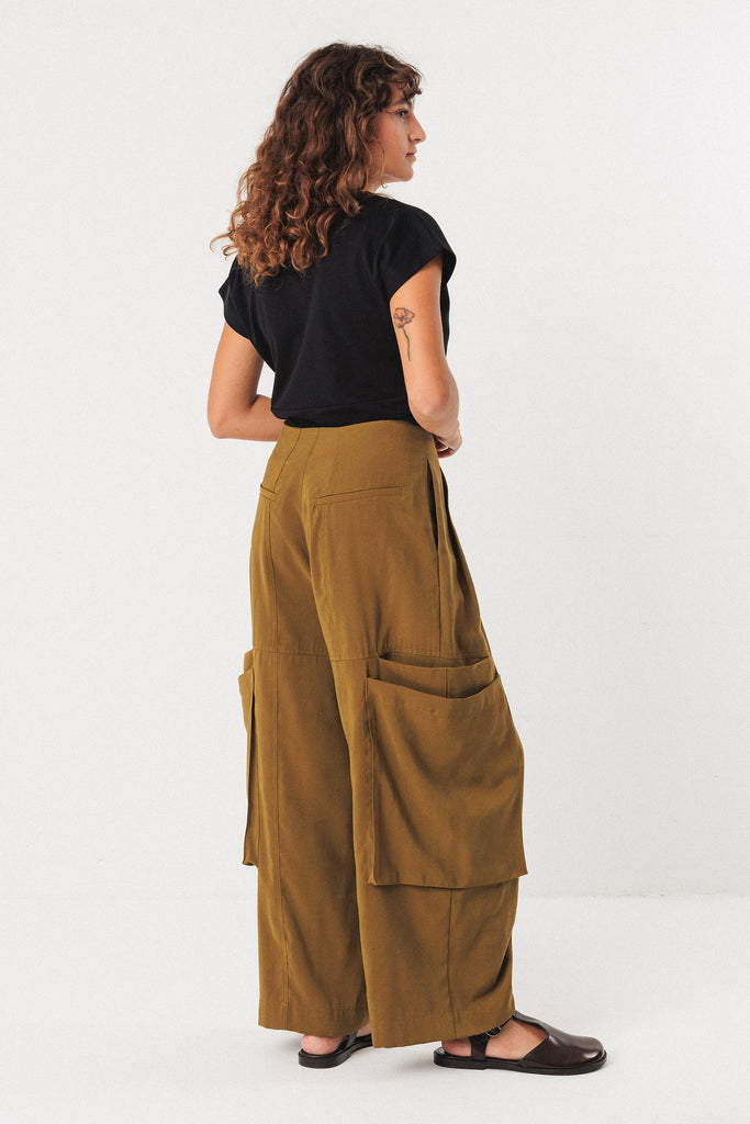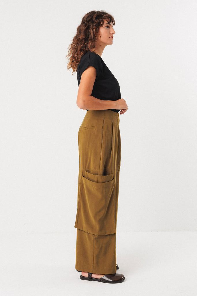 These olive green cargo pants feature a straight cut and come equipped with handy hand pockets plus spacious side patch pockets—perfect for keeping your essentials close while adding a playful touch to your look.
